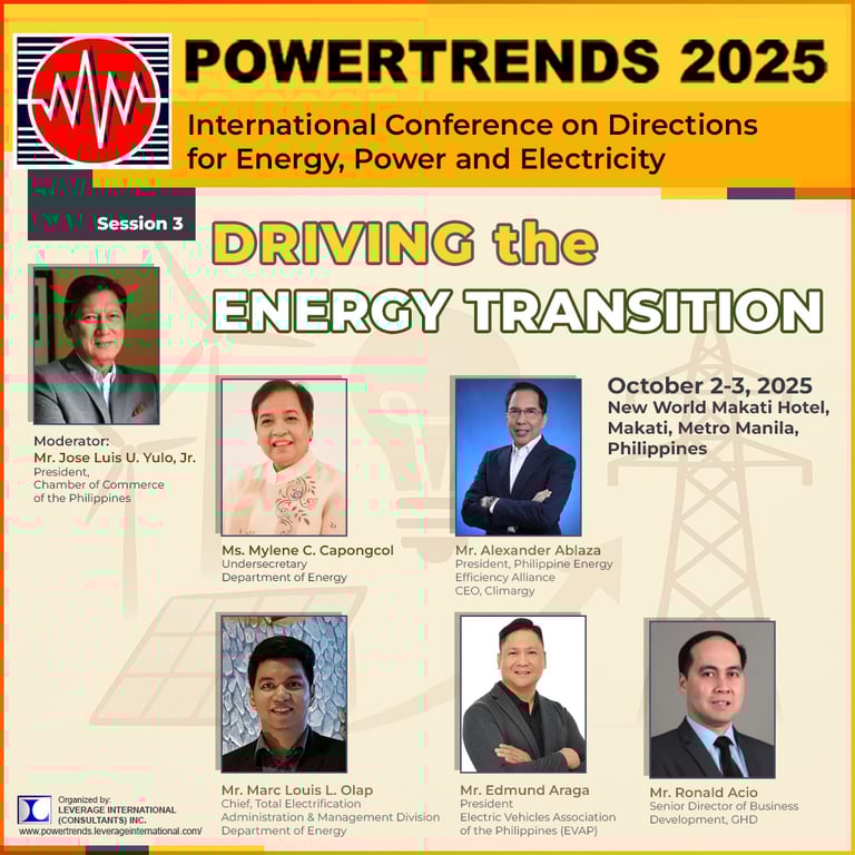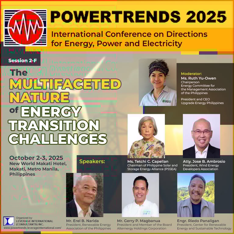 Organized by Leverage International (Consultants), Inc., in cooperation with the Department of Energy, local and international supporting organizations, the two-day conference brings together a distinguished lineup of policymakers, regulators, business executives, and innovators to address the urgent challenges facing the power sector amid geopolitical shifts, economic disruptions, and the accelerating push for clean energy.